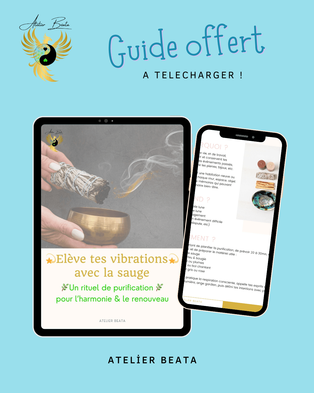 En ouvrant ce guide, tu ouvres la porte vers un nouveau souffle, une façon douce et sacrée de ramener la clarté, la paix et l’alignement dans ton quotidien.